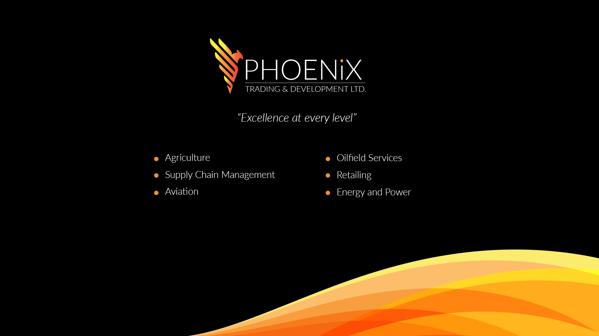 At Phoenix we believe in excellence at every level. Our businesses are formed with this goal in mind. Our business sectors range from Agriculture, Supply Chain Management, Aviation, Oilfield Services, Retailing., Energy and Power Generation.